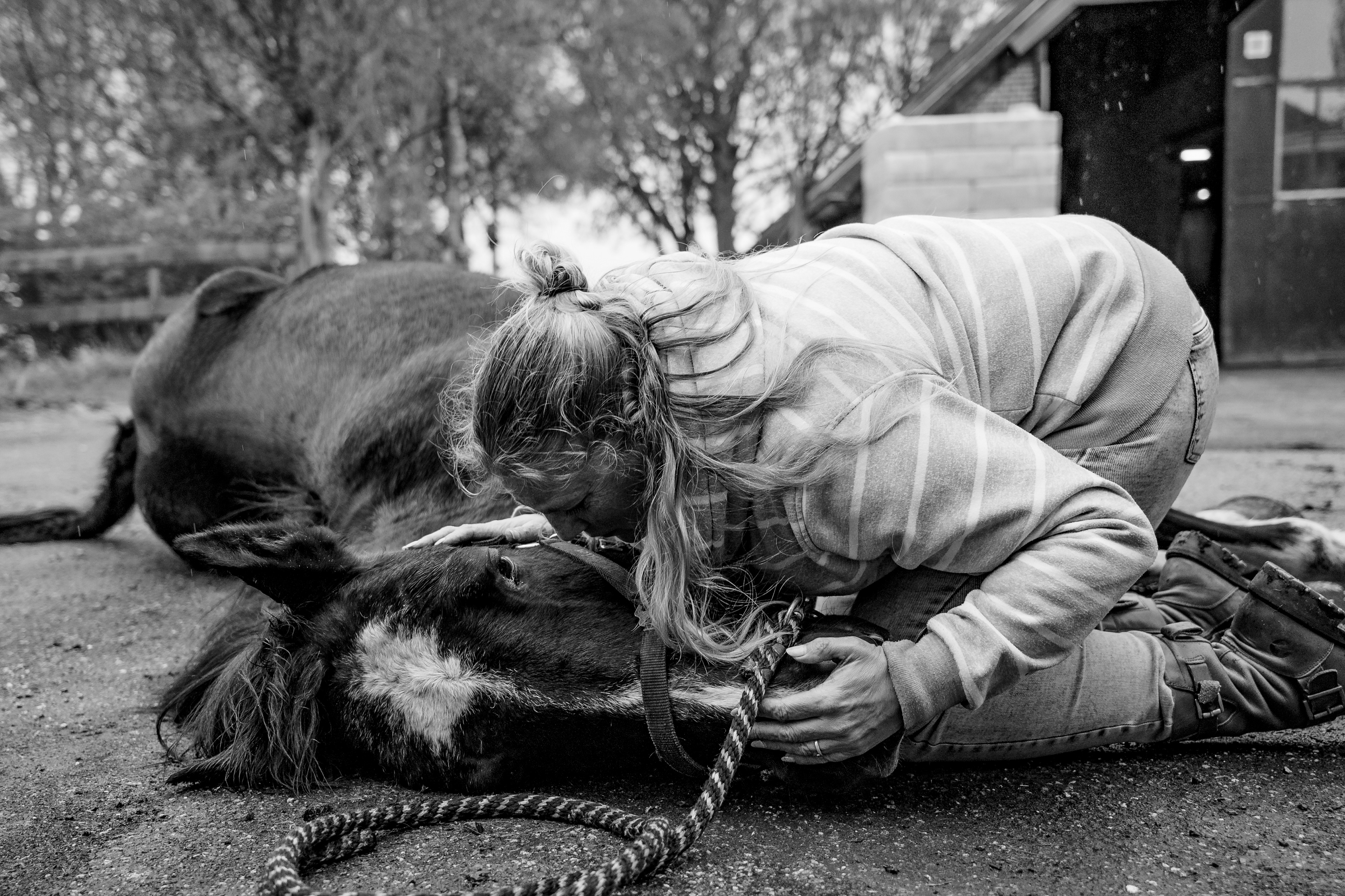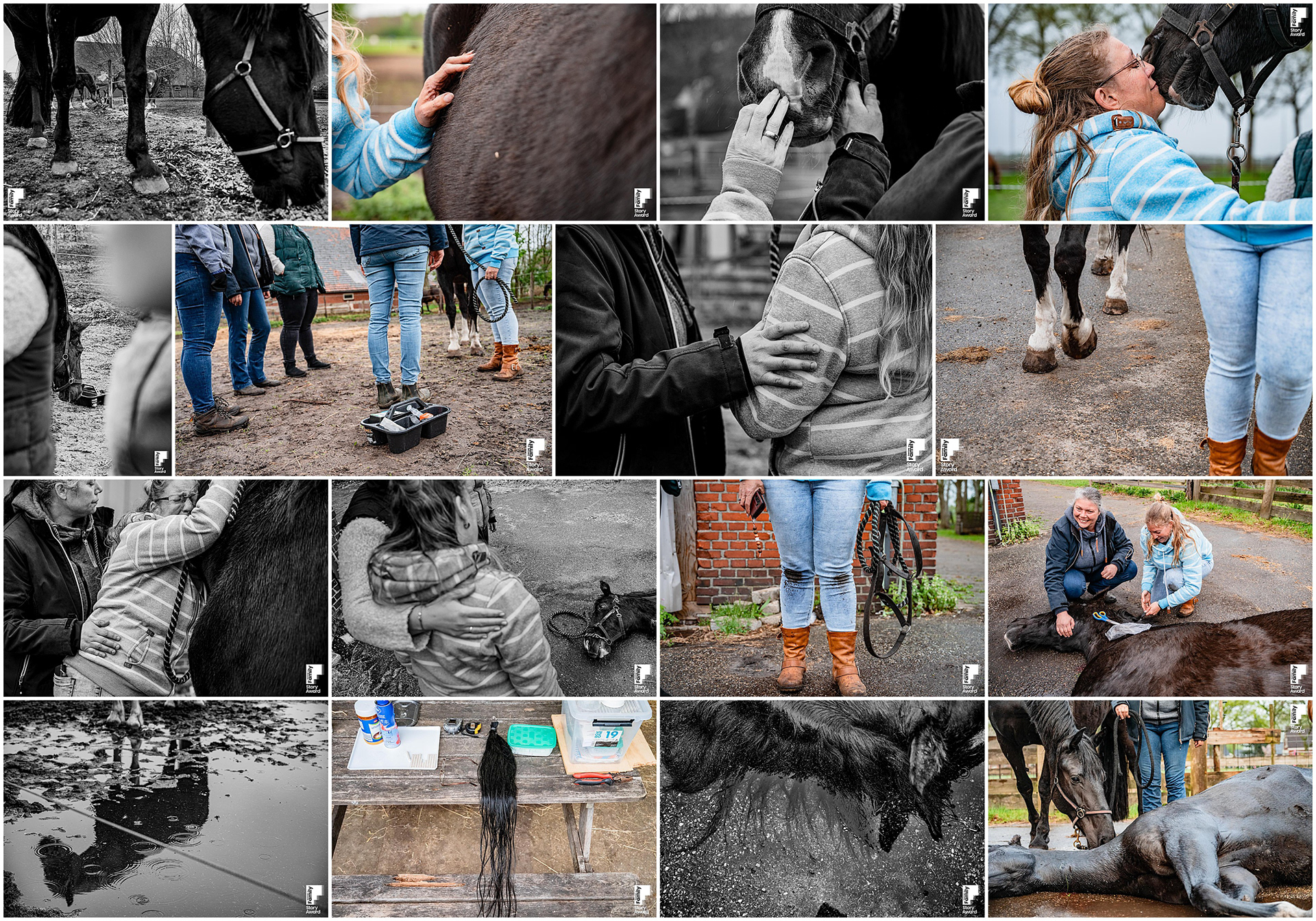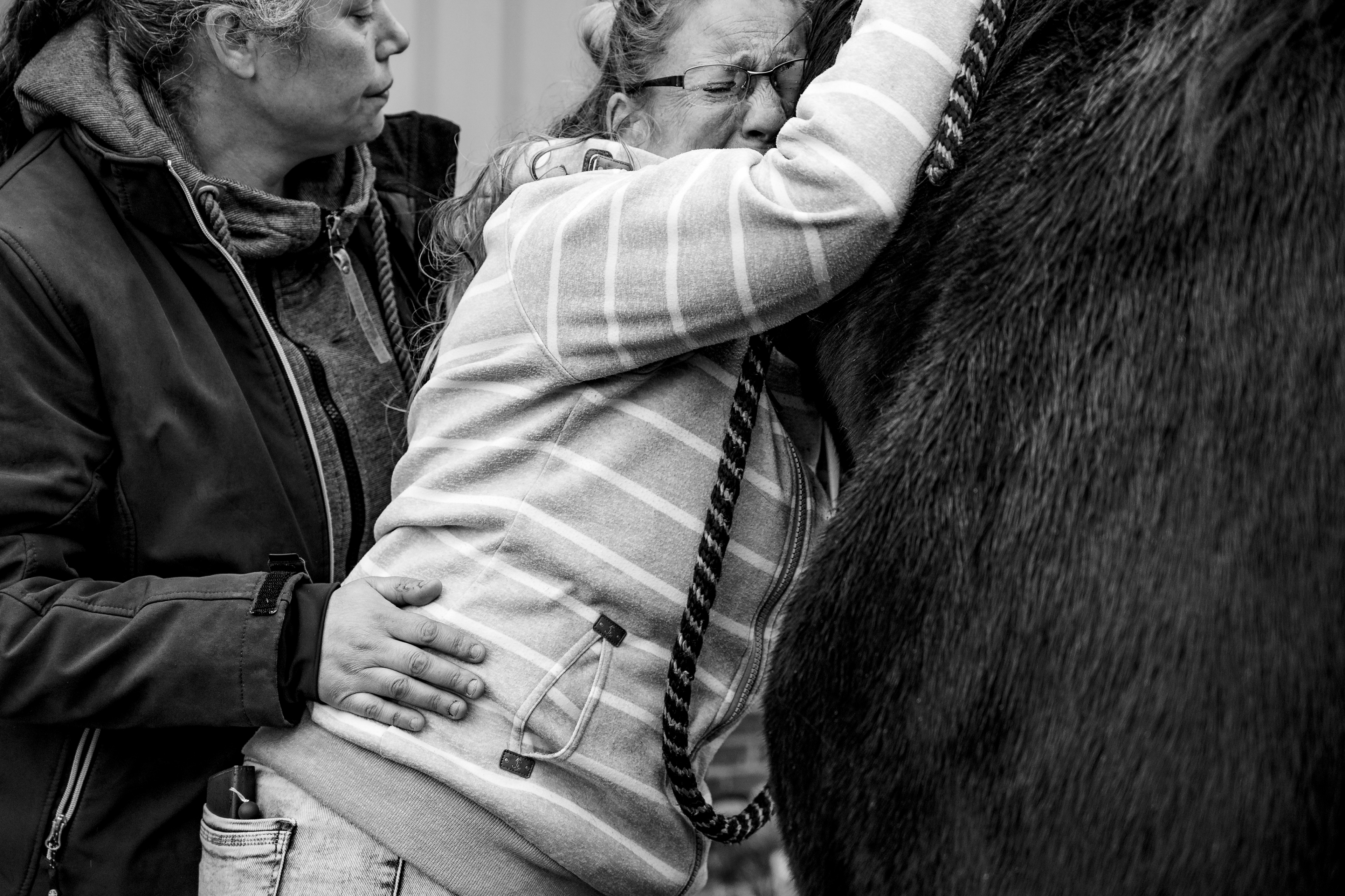 Deze serie gaat over het afscheid tussen mens en paard, een moment dat vaak onzichtbaar blijft. Met aandacht en openheid toont het de gelaagdheid van rouw: verdriet, zachtheid, persoonlijk, maar ook gedeeld binnen een gemeenschap van mensen en dieren. Toen mijn bijrijdpaard Thun(der) moest worden ingeslapen, besloot ik het afscheid van zijn eigenaar Sandra vast te leggen. Hun band was opgebouwd uit vertrouwen, uitdaging, compassie en zorg. Een relatie die even krachtig als kwetsbaar was. De beelden tonen de werkelijkheid van hoe er hier afscheid genomen word van een geliefd paard. Van een weiland vol mensen tot de stilde die daarop volgt: het aanraken, het achterblijven, het bewaren van de staart.